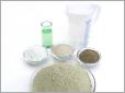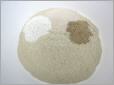 Hier sieht man eine beispielhafte Zusammenstellung von Naturbentonit, Quarzsand, organischem NPK-Dünger, Flüssigdünger und Wasser. Mit der Zugabe von Quarzsand kann man das Granulat abmagern bzw. verlängern, selbstverständlich lassen sich auch unzählig viele andere individuelle Mischungen herstellen.