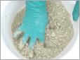 Mit Montonit-Mehl kann man sein individuelles Feuchtgranulat herstellen. Zu diesem Zweck wird etwas Mehl in ein geeignetes Gefäss gegeben und unter Verwendung von Wasser innig gemischt und geknetet, bis ein Granulat von gewünschter Eigenschaft entsteht.